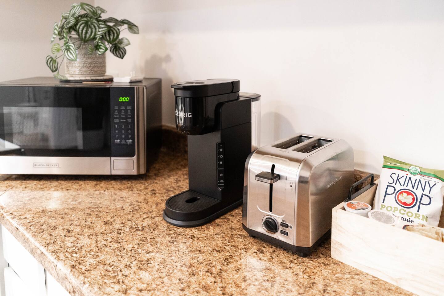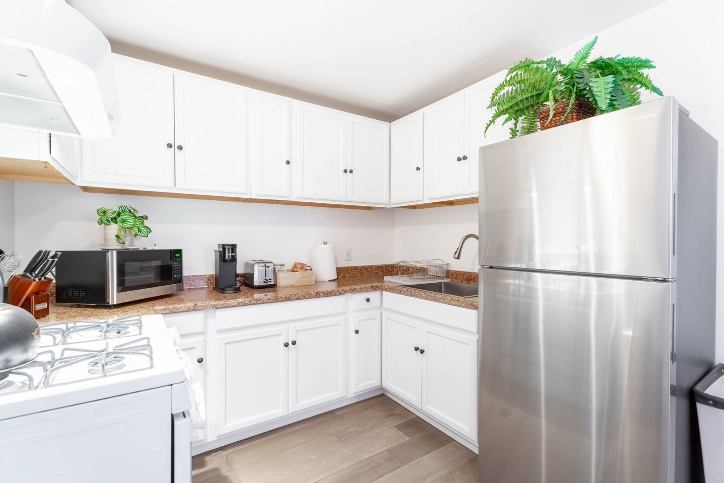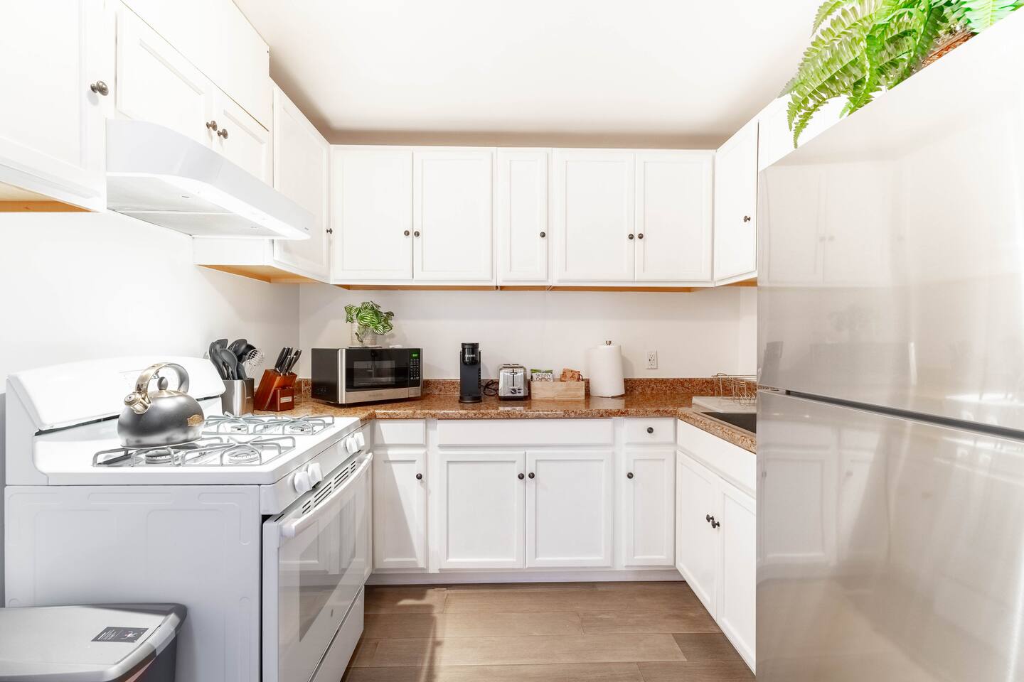 The Unit is very comfortable and clean. There are cooking basics, fully equipped kitchen, and single serve Keurig for coffee with pods provided. It is one of five units on the property, so there are some shared spaces. The backyard, parking, and detached laundry room are all shared.